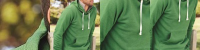- Contrast raglan sleeves, hood and drawcord