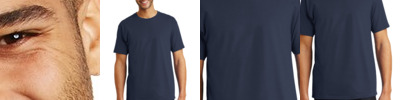 100% preshrunk ComfortSoft® cotton; Double-needle coverseamed neck; Taped shoulder-to-shoulder with ribbed knit cuffs; Tag-free neck label; Ash is 99% cotton, 1% polyester; Light Steel is 90% cotton, 10% polyester;
