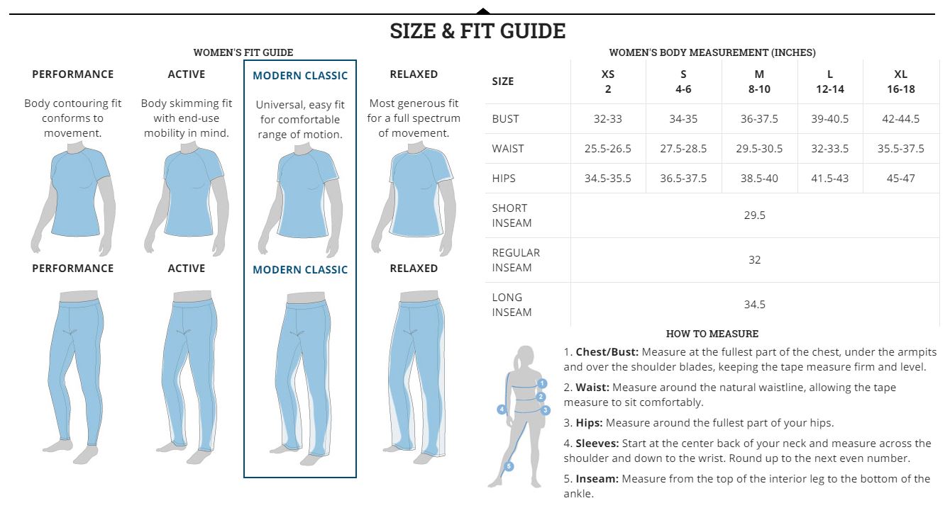 | Bust | 32 1/2 - 35 1/2 | 35 1/2 - 38 | 38 - 41 | 41 - 44 1/2 | 44 1/2 - 48 1/2 |