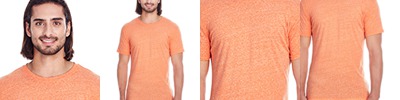 4.1 oz., 50% polyester, 25% combed ringspun cotton, 25% rayon; Lightly textured print friendly surface; Contrast color fleck yarn; Drapey fit; Side-seamed; Tear away label; Every Threadfast product contributes to the Plant with Threadfast program;