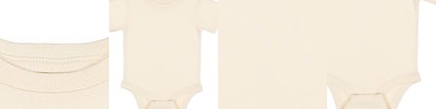 Ribbed Collar; Taped shoulder-to-shoulder; Double-needle hem sleeves and bottom; Double-needle ribbed binding on leg opening; Innovative three-snap closure; Snap Tape Technology that keeps kids safe and secure; EasyTear label; CPSIA compliant - tracking lable in side seam;