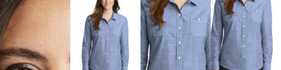 Thoroughly updated, this crisp nailhead shirt has a silky feel and a wrinkle-resistant finish for exceptional non-iron performance. 4-ounce, 60/40 cotton/polyester with pucker-free taped seams and RH engraved buttons to elevate the office-ready look. Open collar and neckline, bust darts and back seaming. Mitered adjustable cuffs.