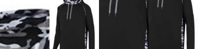 - 100% polyester printed wicking knit side inserts, piping, and hood lining features Mod Camo print