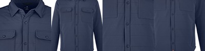 6.6 oz./yd2 / 225 gsm, 100% polyester; Snag protection plus jersey with moisture-wicking and antimicrobial performance; Matching flat-knit collar; Three-button placket; Double pen pocket on left sleeve; Mic clips at shoulders and lower placket; Spandex enhanced rib knit cuffs; Side vents; 1 1/4" drop-tail hem for everyday activity and movement; Carbon neutral style in partnership with Green Story third party verified carbon offset program. For more information click on carbon neutral link above MSRP. ;