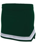Heavyweight 90% polyester/10% spandex knit; Ladies' fit; Pad print label; Flat front waistband with covered elastic at back; Two darts at back of skirt for more custom fit; Left side seam V-notch at hem accented with three-color trim;