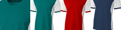 4-way stretch fabric; 5 oz., 80% polyester, 20% spandex; Moisture-wicking to keep athletes cool; Poly blend for max performance; Stain-release and odor-resistant for easy care; Heat-seal tag; All seams flat-lock stitched; Rash guard protection;